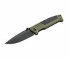 The heart of the knife is the coated Spearpoint blade made of extremely edge-holding D2. With this steel, a length of 92 mm and a thickness of 3.6 mm, it is suitable for demanding tasks in everyday life, deployment or outdoor activities. It locks by stainless steel linerlock and is opened by the detachable thumb stud on both sides. The opening aid is modeled on the magazine release of the Walther PDP pistol.