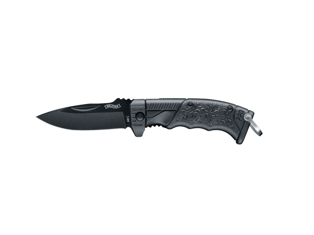 Con sólo once centímetros de largo cuando está abierto y 63 mm cuando está cerrado, el PPQ Walther pesa lo mismo que una carta estándar. Este pequeño cuchillo también hace honor a su nombre de otra manera. Al igual que la famosa pistola Walther PPQ tiene un acabado de superficie Hi-Grip miniaturizado. La hoja spear-point de 48 mm y recubierta de negro está fabricada en acero de alto rendimiento 440C y debe abrirse con una segunda mano utilizando la ranura para clavos. Puede llevar este cómodo cuchillo en su llavero en todo momento.