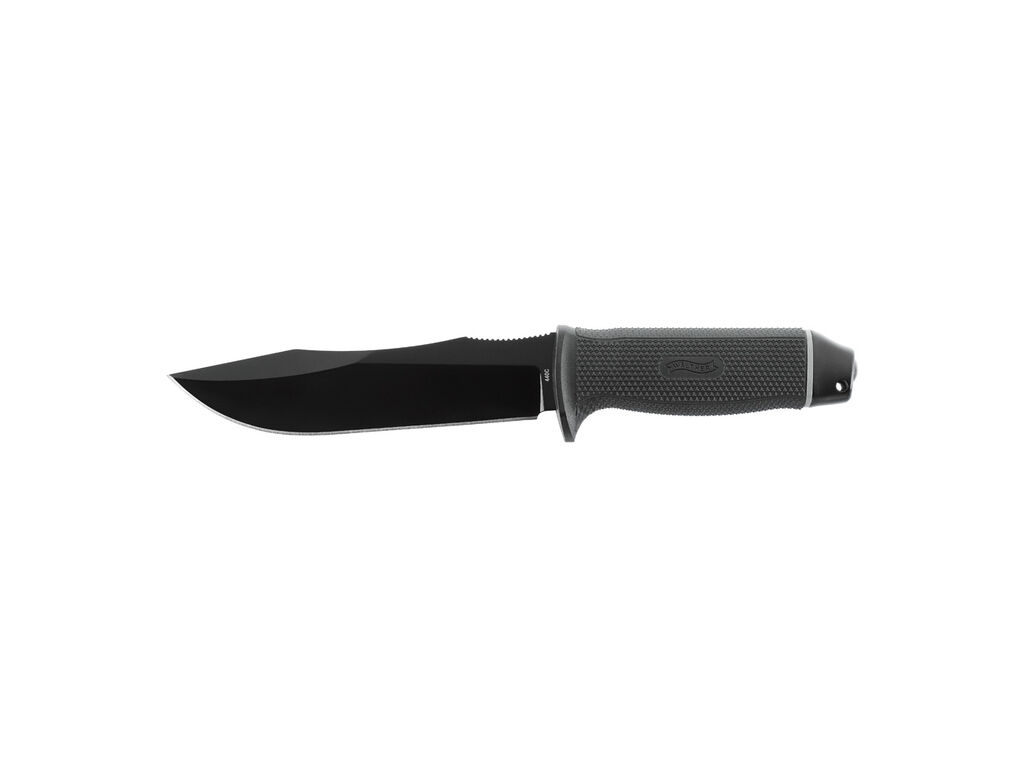 El Walther Bowie 150 es una reinterpretación moderna del icónico cuchillo Bowie. Con su espalda curva, la hoja de 150 mm no solo ofrece un diseño más dinámico, sino que también conserva toda la resistencia del clásico hasta casi la punta, gracias a su grosor de 6 mm. Fabricada en acero 440C con un revestimiento mate en negro, esta hoja combina durabilidad y capacidad de corte, ideal para actividades exigentes al aire libre, supervivencia, bushcraft e incluso como cuchillo táctico. El mango, inspirado en la superficie texturizada de las pistolas Walther Q5, proporciona un agarre firme y ergonómico. Además, su guarda de mano prominente y la rampa para el pulgar ofrecen máxima seguridad y control, incluso en las condiciones climáticas más adversas. Un cuchillo que redefine las normas para quienes buscan fiabilidad y rendimiento sin concesiones.