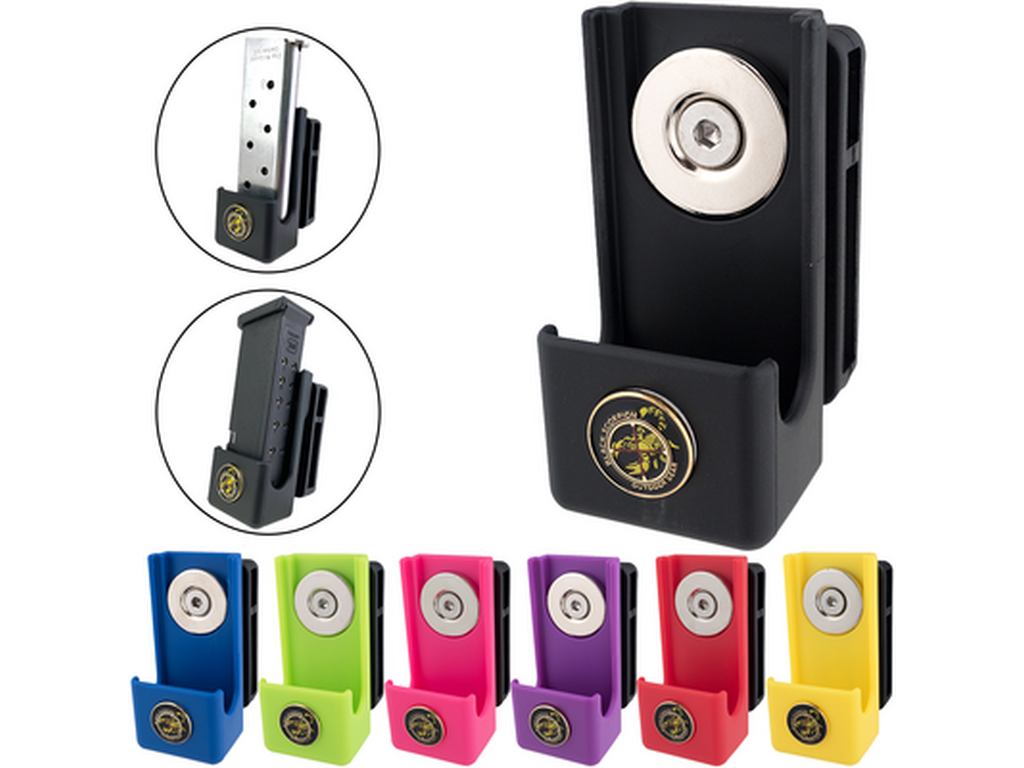 Este porta cargadores ofrece la ventaja de poder usar cargadores de una o dos hilera en el mismo porta. El magneto puede soportar pesos de hasta 13,60 kilos.